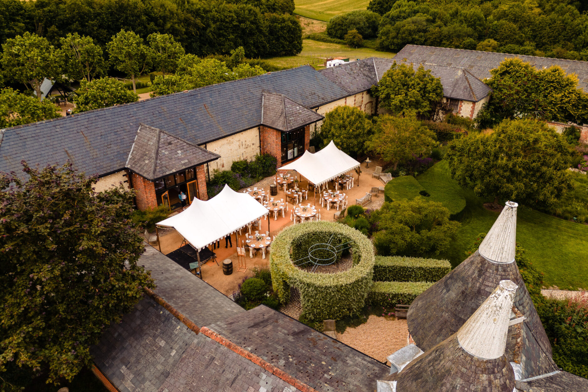 The Barn can be arranged for any type of event from corporate presentations to swanky dinner dances. Food and drink menus are conjured up to suit each unique vibe – from street food trucks to fine dining, juice bars to craft beer and cocktails. Outdoors, our courtyards are perfect for buzzy al fresco action, while the walled garden provides the ideal escape from the world, and proceedings.