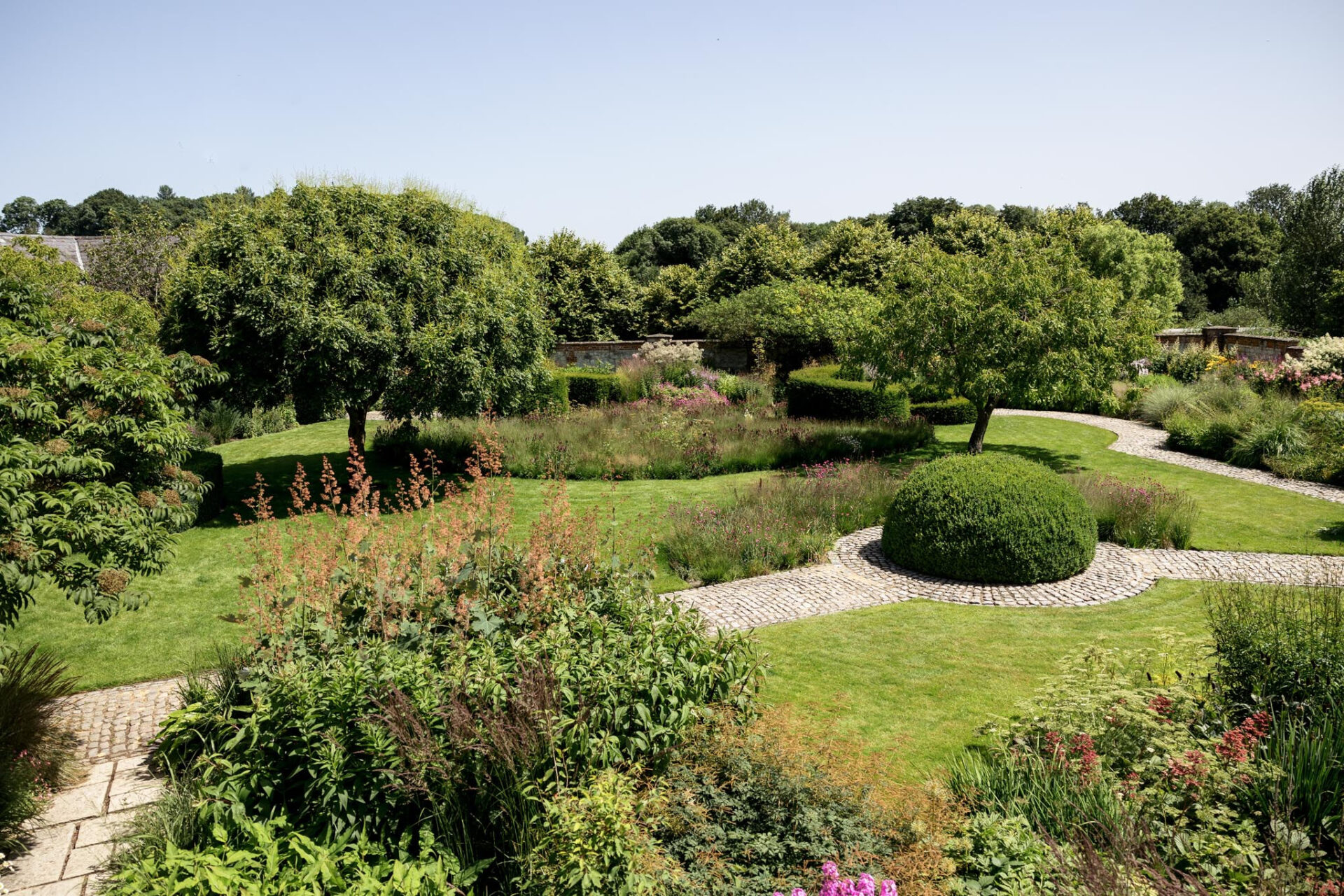 Originally created on the site of the old partially walled farmyard, our gardens mostly welcome city livestock, transforming them into free-spirited wildlife. The Courtyard is a naturalistic affair, flanked by ornamental grasses and unusual hardy perennials. In contrast, the more regimented front garden is a grid pattern of rusted steel-edged beds and gravel paths. Planted with swathes of tall grasses, mixed with flowering perennials, it creates a dream-like meadow feel.